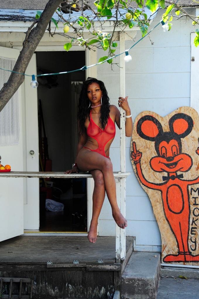 İlk görüntü, dizleri bükülmüş, tavandan aşağı inen kancadaki halata ayak bilekleri bağlanmış, onu arkadan becerirken kolları bükülmüş ve kaldırılmış, tavandan sarkan ateşli bir bebeği göstermektedir. Başka bir görüntü, zekâya bağlı bir kızı gösteriyor